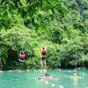 | 9h30 | Đến Động Thiên Đường quý khách tiếp túc hành trình 1.6km bằng xe điện trung chuyển trong vùng lõi của vườn quốc gia Phong Nha – Kẻ Bàng. Đến chân động quý đoàn đi bộ theo đường thoai thoải 750m hoặc đi bộ 624 bậc thang trên cung đường rợp bóng cây xanh. |